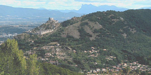 Les ruines du château de Crussol sur la colline du même nom qui domine le village. Forteresse médiéval du début du XIIe siècle.