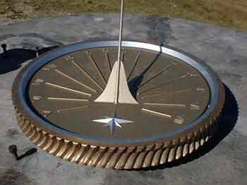 cadran horizontal, métal, lignes chiffrées en bout, rose des vents, style polaire, daté 1999