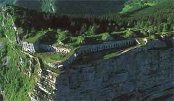 Fort du nom de Saint Eynard qui selon la légende aurait vécu 126 ans. Construit en 1872, par Cosseron de Riviers, comme ceux du Murier, du Bouret et des Quatre Seigneurs, à été terminé en 1879. Sa forme en V à la pointe de la montagne sur une surface de 274 000 m2, à une altitude de 1338 mètres (fort le plus élevé de l'ancienne défense grenobloise), a servit à héberger une importante artillerie militaire et plus de 230 hommes. Le matériau utilisé pour la construction est de la pierre calcaire tithonique, qui présentait alors l'avantage d'être présente en quantité sur les lieux et d'être Entrée du Fort de Saint Eynard en Isèresuffisamment résistante pour protéger les importants magasins de poudre. Tombé presque en ruine, il est rénové en 1991, aujourd'hui, seul la partie Est du fort se visite et c'est cette partie qui présente un grand intérêt historique. Quelques casemates aménagées racontent la mémoire de la vie militaire d'autrefois avec mannequins et mobilier d'époque, bureau d'officier, cuisine, prison, stockage des vivres.., on y trouve une petite chapelle, pièce essentielle dans un fort, des salles d'exposition d'artistes locaux, ainsi qu'une rétrospective des travaux menés pendant quatre ans par des ouvriers qualifiés et supervisés par des historiens des fortifications, des architectes des Bâtiments de France et des responsables des affaires culturelle.
