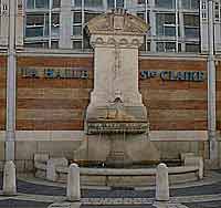 Sur cette place, s'élevait avant la révolution le couvent des religieuses de l'ordre de St François, placées sous la protection de Ste Claire d'où le nom de la place depuis 1816. Sa démolition entraîna un remodelage complet du quartier qui s'acheva en 1874 par la construction d'une Halle, conçue par l'architecte Riondel. "c'est à l'architecte Baudrit que nous devons ce bâtiment de style rétro " construit dans l'esprit des anciennes halles de Paris. Le principe de construction fait appel à des colonnes en fonte portant une charpente de fer, le tout contenu dans une enveloppe de maçonnerie surmontée de larges arcades vitrées..