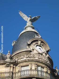 Jadis le premier édifice a été construit dans les années 1880, abritant une usine appartenant aux célèbres industriels Bouchayer-Viallet. Lors du déménagement de l'usine Cours Berriat, au début du 20e siècle, la plus grande partie du bâtiment fut détruite à l'exception de l'immeuble situé avenue Alsace Lorraine, et des locaux de l'avenue Félix-Viallet. Sous M. Marcel Besson, nouveau propriétaire l'imprimerie générale vit le jour, en 1909, la coupole dotée d'une charpente métallique, puis d'une charpente en bois se dressa surmontée d'un aigle, réalisé en Suisse, la statue pèse 480 kilos avec une envergure de quatre mètres. Durant l'occupation allemande, le journal "Le Petit Dauphinois" du fermer définitivement ses portes, son rédacteur M. Georges Biessy ayant été abattu par la résistance, le 14 août 1944 avec le préfet Philippe Frantz. Le bâtiment fut occupé dans un premier temps par Les Allobroges et le Dauphiné Libéré jusqu'à la scission entre les deux journaux et du départ des Allobroges pour un autre local. Le Dauphiné Libéré est installé depuis 1945 dans cet immeuble, avec la création en 1977 du complexe de Veurey entraînant le départ de l'imprimerie et des rotatives.
