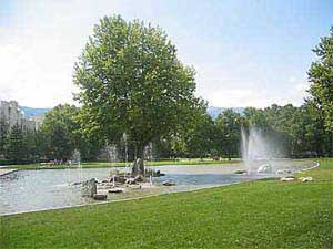 Le bassin central composé de rochers artificiels avec une fontaine réalisée par le sculpteur Marc Couturier donne un peu de fraîcheur lors des jours de grande chaleur. Vous pouvez également admirer dans la marre pédagogique voisine des carpes koïs et des kalikos japonais entre les nénuphars, vient s'ajouter à tous cela une flore variée, cèdres, cyprès d'Italie, pins noirs d'Autriche, peupliers...