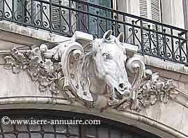 Situé dans le cartier Championnet, la rue Génissieu fut baptisée le 24 avril 1896 (jadis rue de la Pépinière). Elle part de la rue Lakanal et rejoint le cours Jean Jaurès par le passage de l'Aigle. Sur une façade de la rue Génissieu, une immense porte cochère, implanté à l'angle du bâtiment, sur le haut une tête de cheval, taillée à même un bloc de pierre ou réalisée en ciment moulé (?), n'est pas issu du pure hasard. Cette tête de cheval grandeur nature rappelle les services d'attelages implantés en ce lieu. C'est à la fin du XVIIIème siècle que la famille Repellin crée une société de transport hippomobile, cette porte cochère permet de remiser postillons, chars ou diligences. Plus tard, les établissement Traffort prendront la succession des locaux et les bus remplaceront les chevaux.