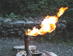 Elle serait alors le témoins d'une nappe pétrolifère ?. La flamme peut être éteinte par grand vent, il suffit de la rallumer avec un briquet ou une allumette. Cette merveille du Dauphiné reste donc encore aujourd'hui, une curiosité à découvrir. Dès l'Antiquité, on vénérait en ce lieu Vulcain, le dieu romain du feu. En 1523 Jérôme Montreux parlait de la Fontaine ardente "fontaine qui vomit des flammes", Nicolas Chorier, avocat grenoblois féru d'histoire local, affirma qu'il était possible d'y faire cuire des oeufs...